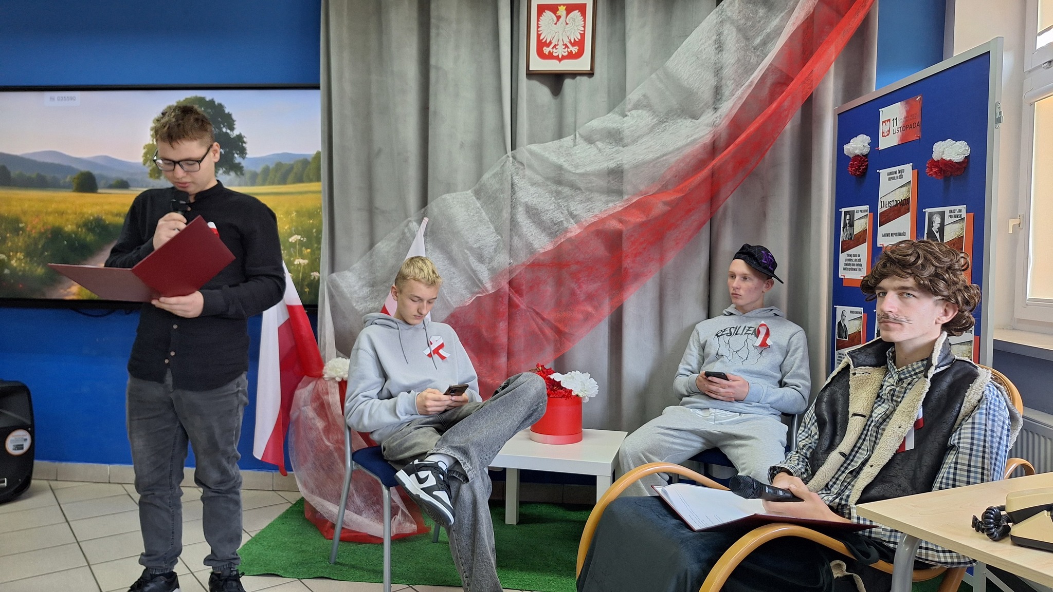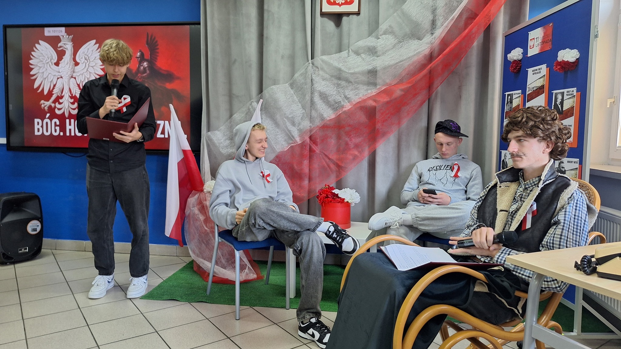 Narodowe Święto Niepodległości, które będziemy obchodzić 11 listopada, stało się okazją ku temu. W ciekawym i wzruszającym programie artystycznym, poznaliśmy historię naszego kraju, jego piękne i chwalebne chwile, ale też trudne i bolesne momenty. Interesujące było zestawienie pokoleń: dziadka i wnuków, spojrzenie na historię przez pryzmat wieku, doświadczeń i czasów, w których przyszło im żyć. Upamiętnienie 11 listopada 1918 roku to także wspomnienie o wielkich Polakach zasłużonych dla kraju i odzyskania niepodległości. uzupełnione wzruszającymi pieśniami i piosenkami o Polsce, niepodległości i wolności oraz wartościach, dla których warto żyć.