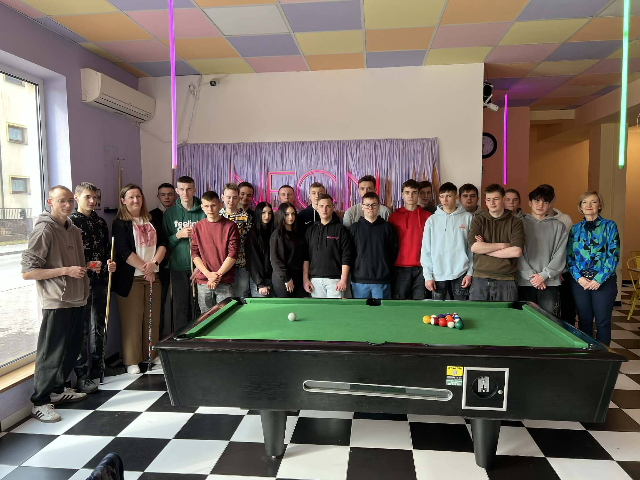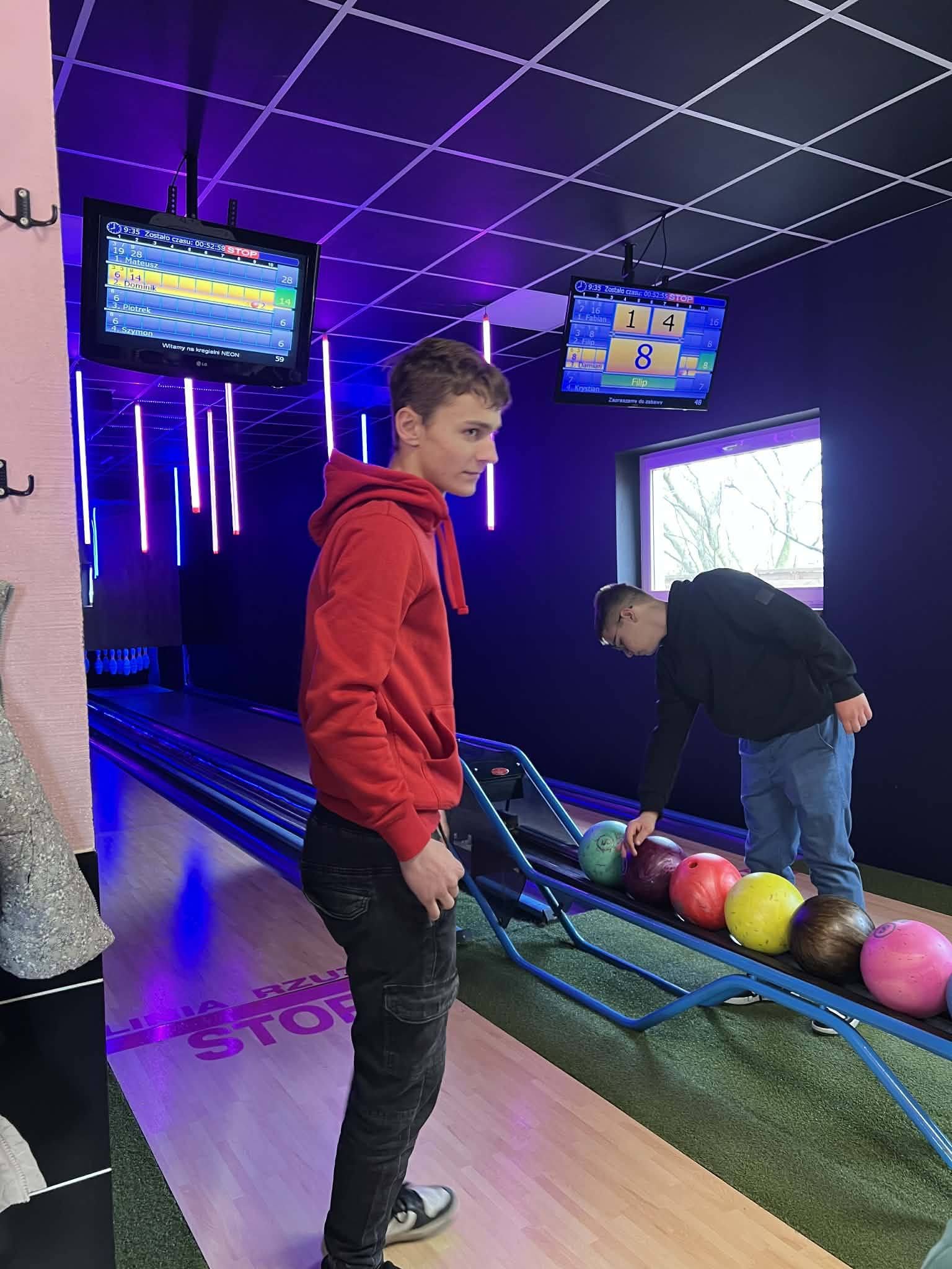 Kierunek: Neon! Nasi uczniowie z klas II i III Branżowej Szkoły I stopnia zamienili dziś ławki szkolne na tory w kręgielni Neon!