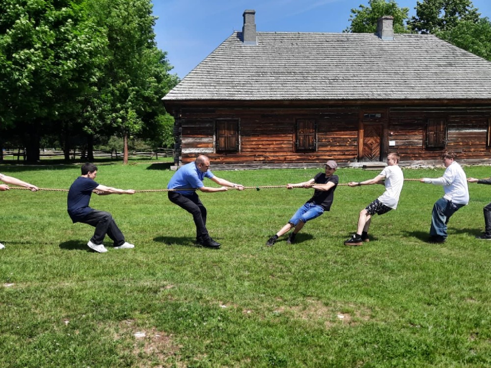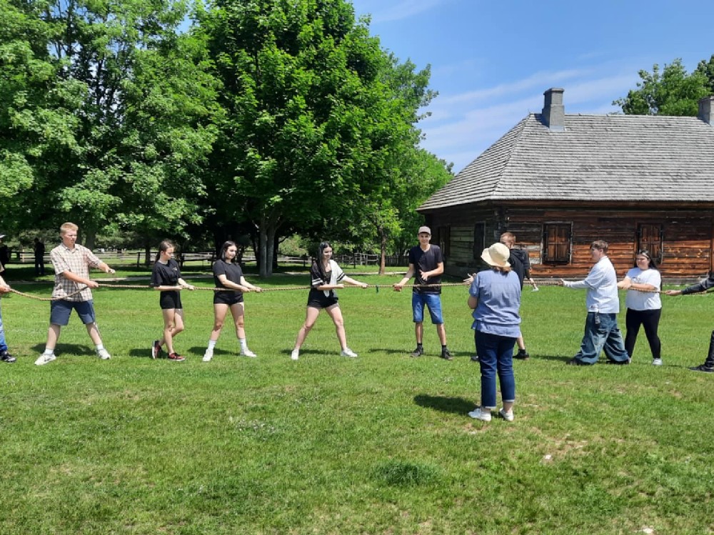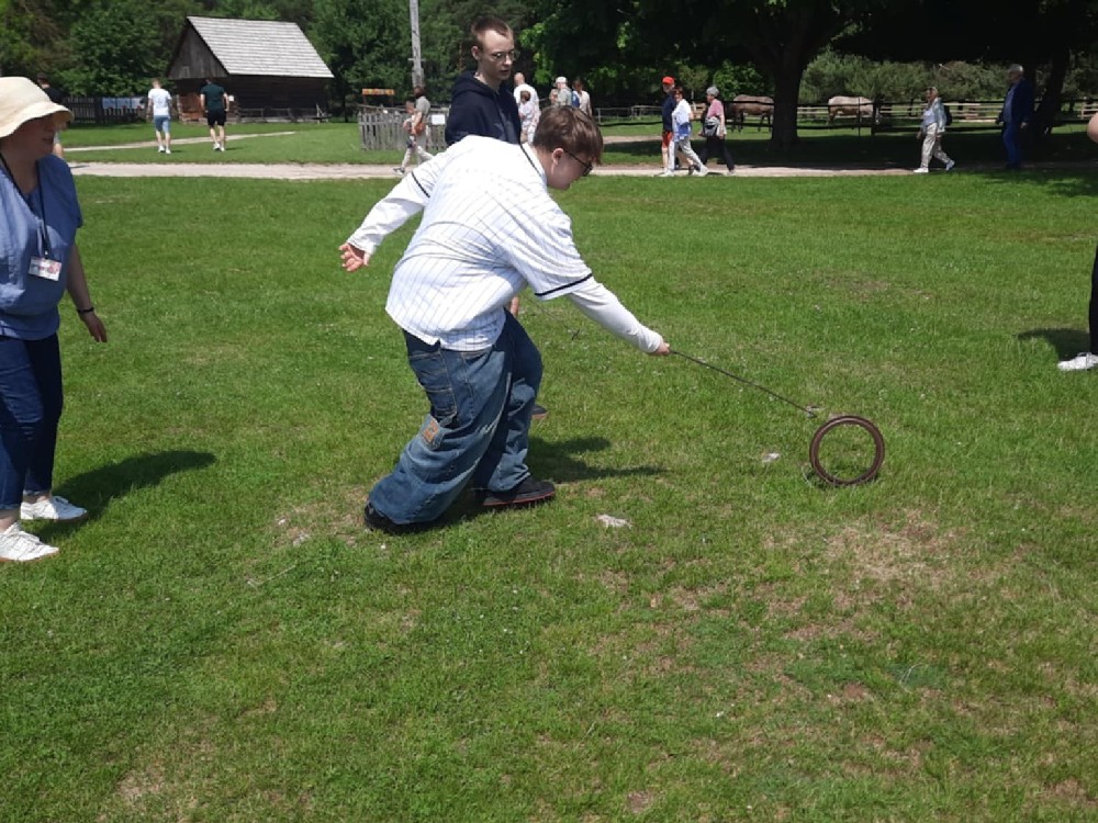 Zwiedzając Muzeum z przewodnikiem, mogliśmy poznać kulturę ludowej Kielecczyzny, a w szczególności warunków życia, pracy oraz tradycji ludności wiejskiej i z małych miast regionu świętokrzyskiego w XIX i na początku XX wieku. Muzeum to skansen, który prezentuje zabytki budownictwa wiejskiego i małomiasteczkowego, odtwarzając dawny układ osadniczy wiosek z różnych subregionów Kielecczyzny. Wzięliśmy również udział w dawnych grach i zabawach terenowych, co przyniosło wiele radości.